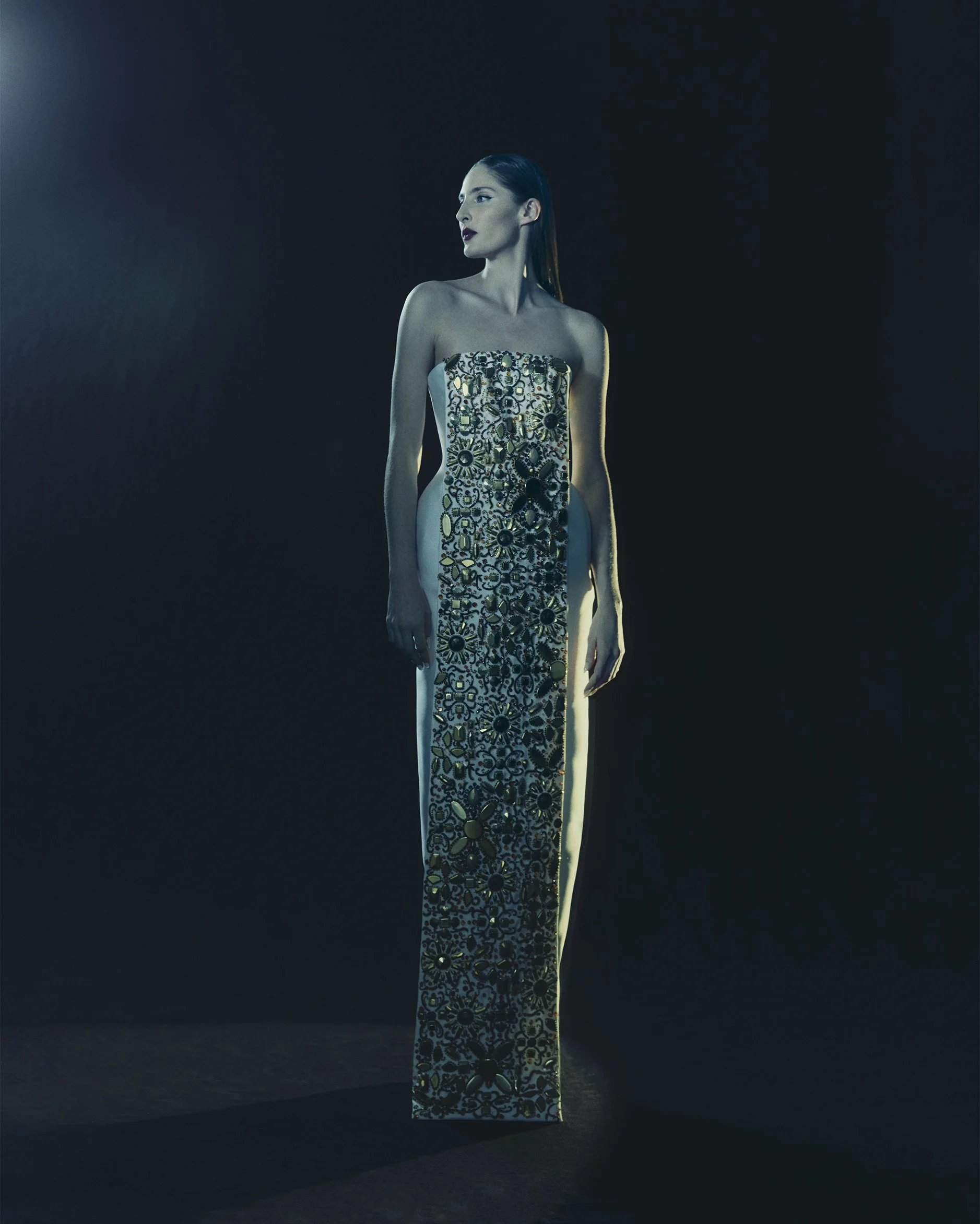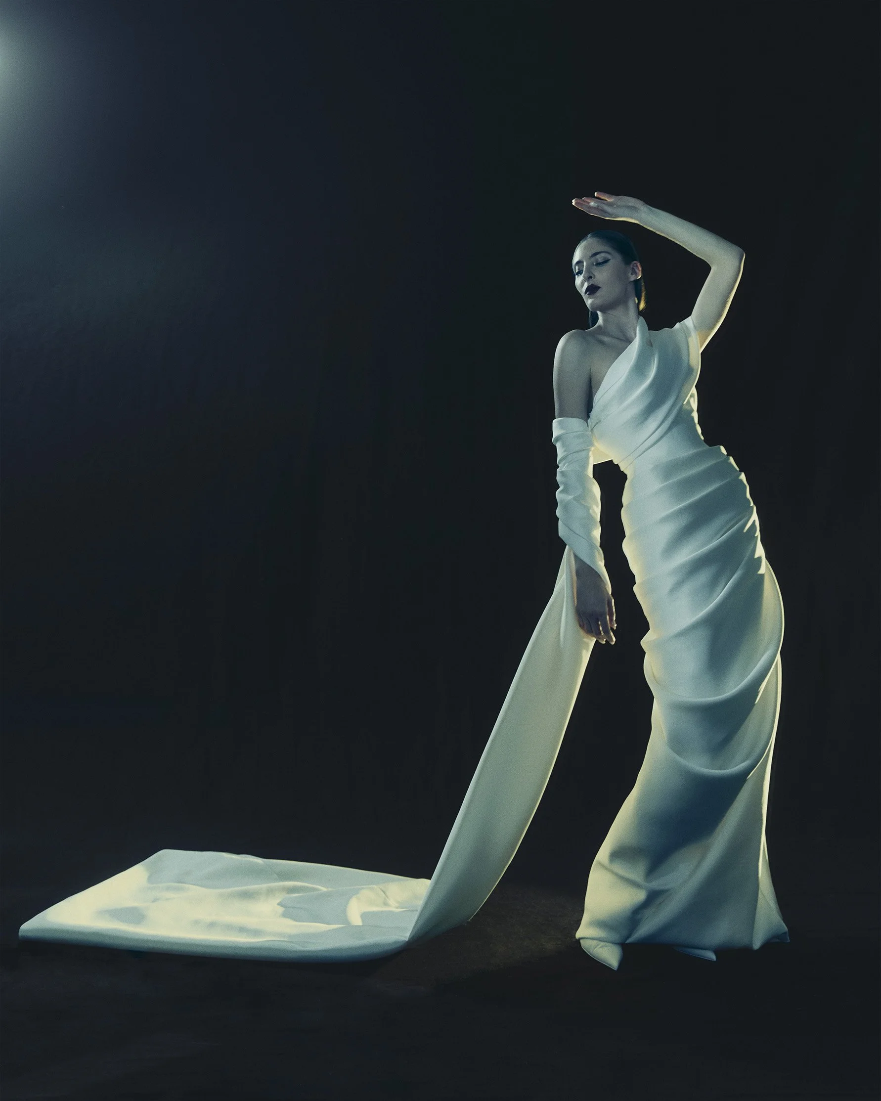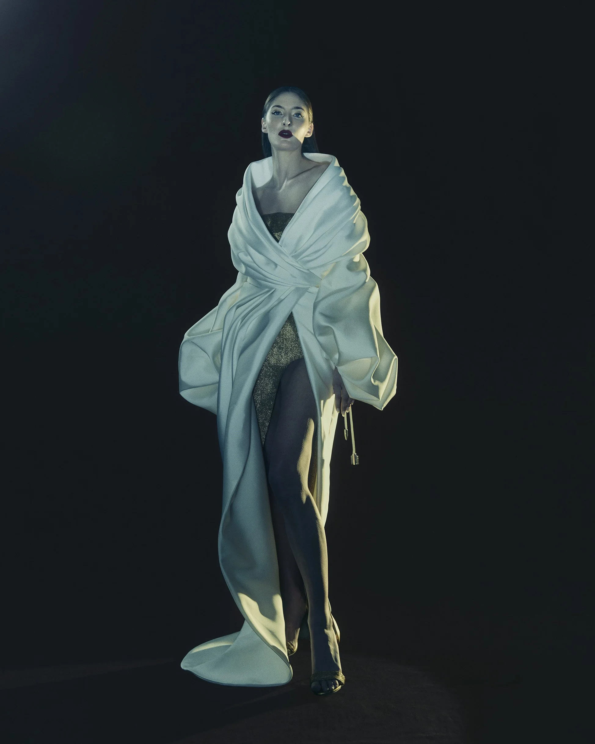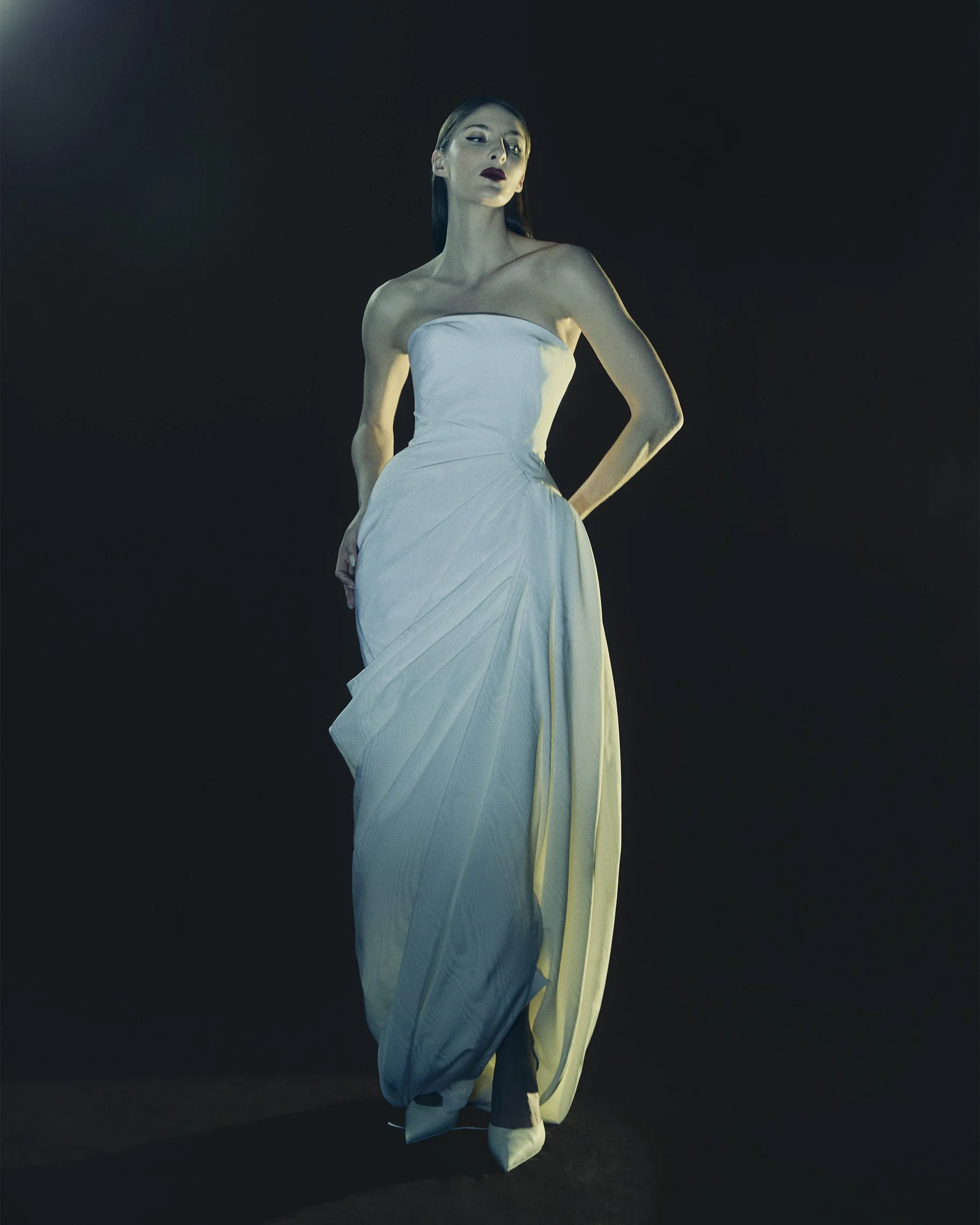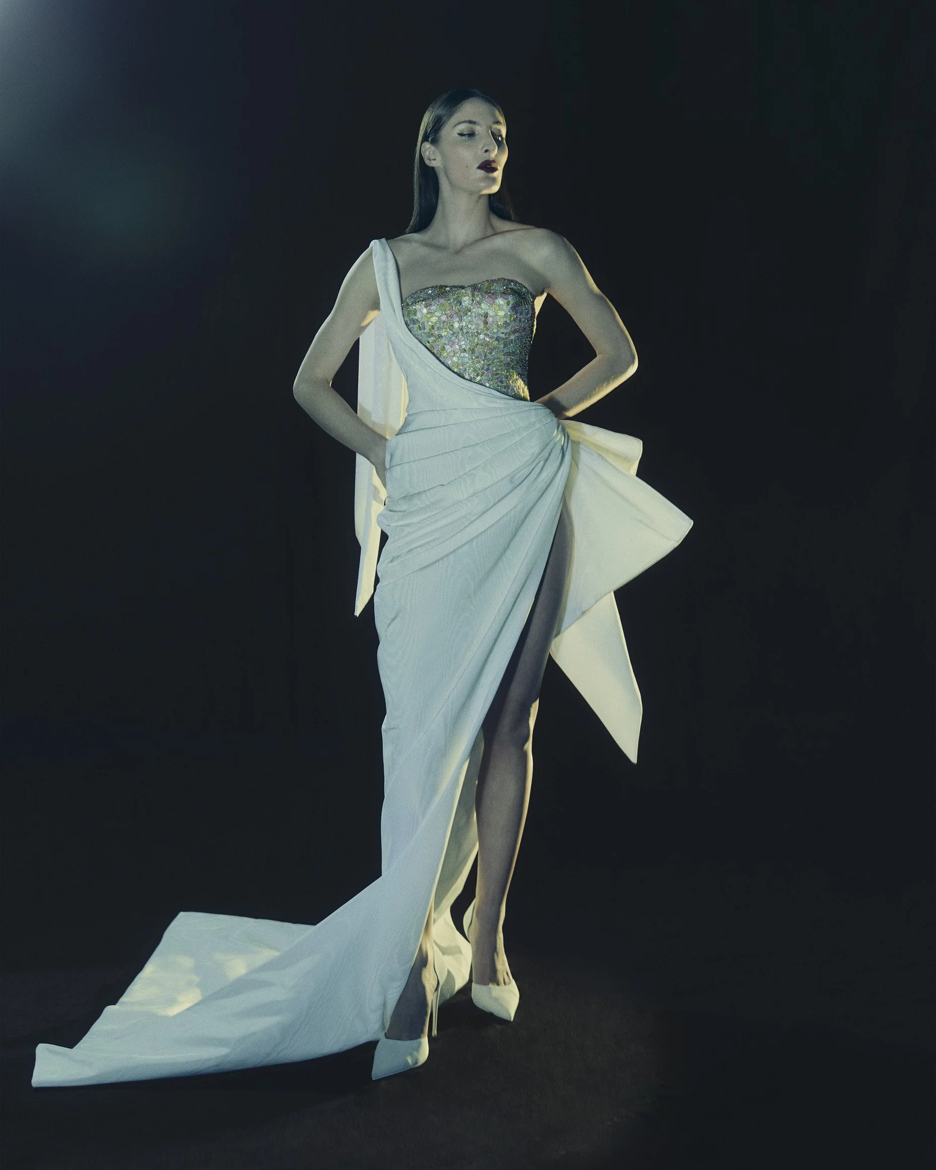 Presented as a cinematic narrative, “Goddess” bridges myth and modern couture, drawing from iconic films including Cleopatra (1963), Julius Caesar (1953), The Ten Commandments (1956), Land of the Pharaohs (1955), and The Egyptian (1954), with a nod to the era’s legendary costume makers such as Charles Le Maire. Draped gowns suggest Grecian divinity; architectural tailoring hints at Roman power; corsetry and sweeping capes deliver pure screen drama.