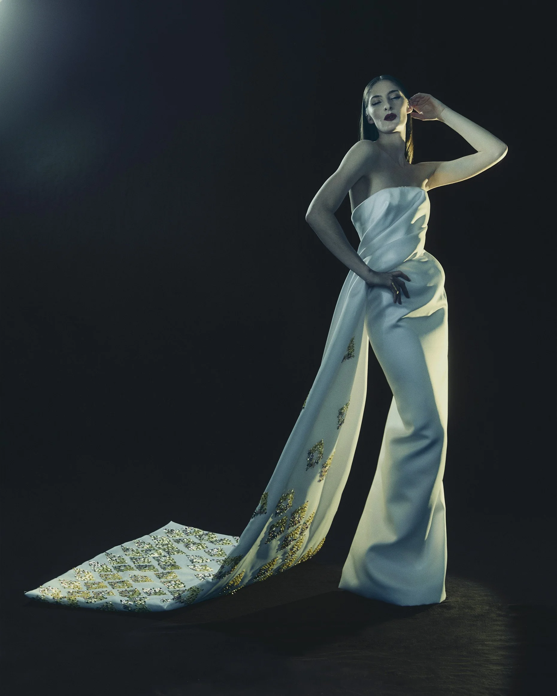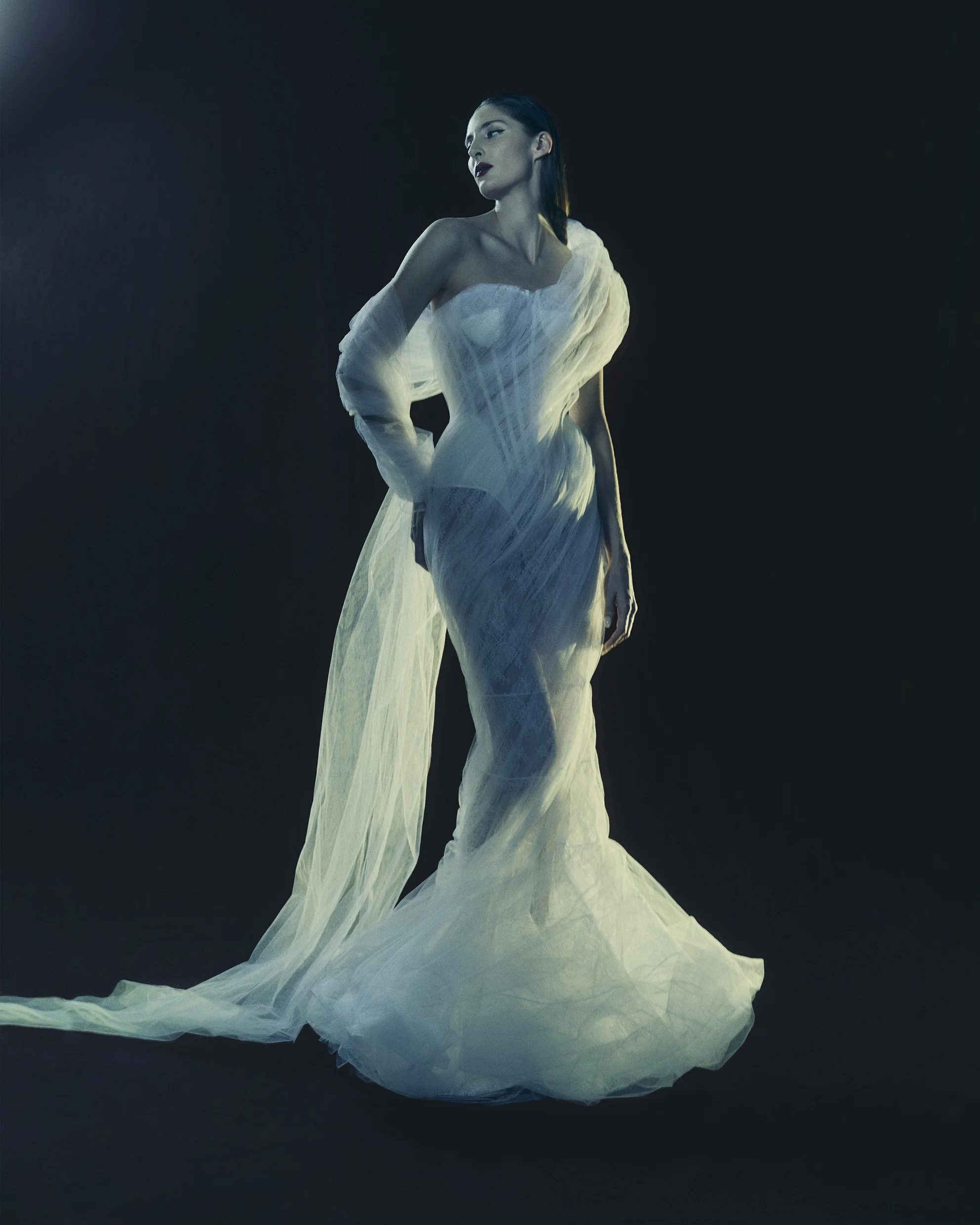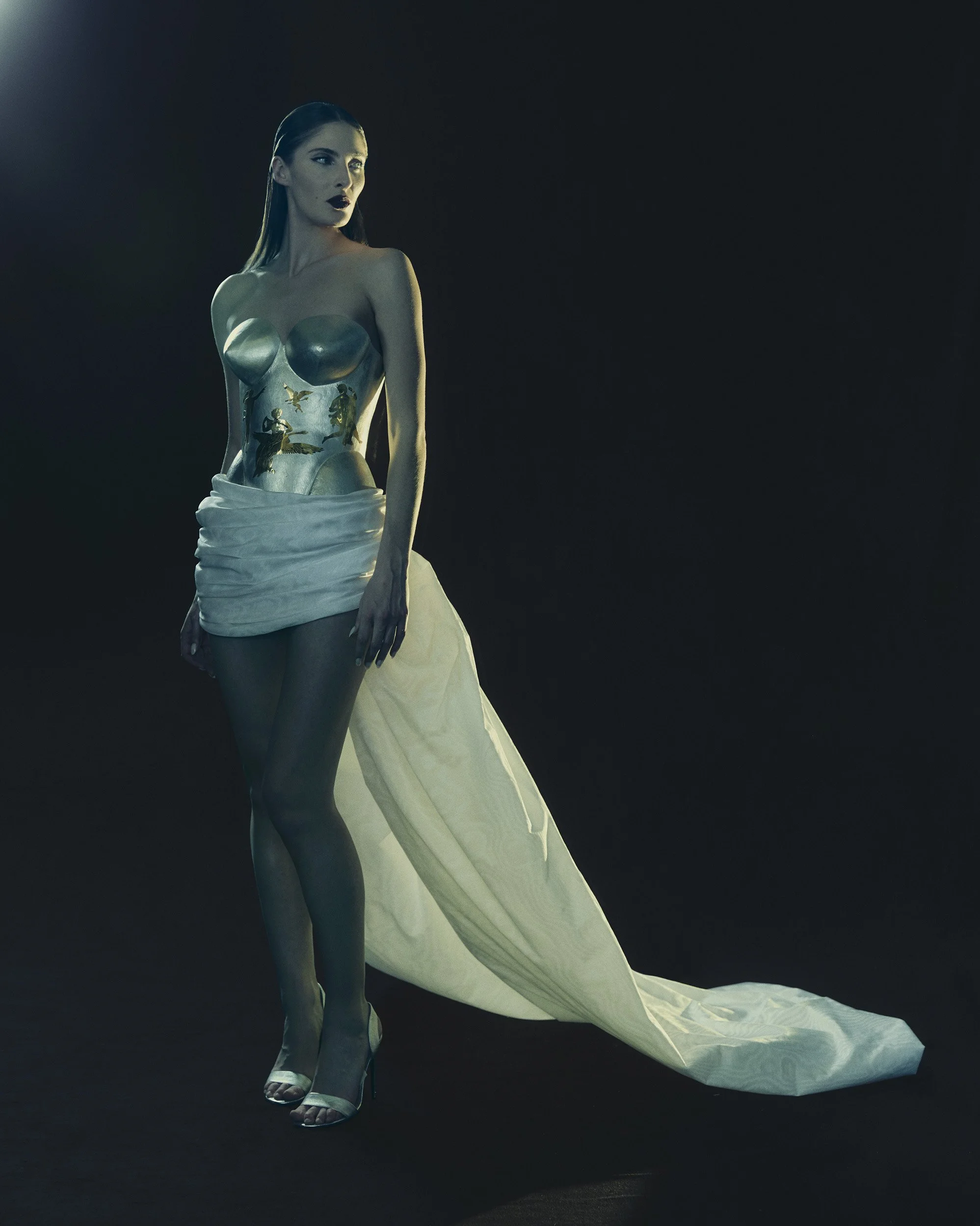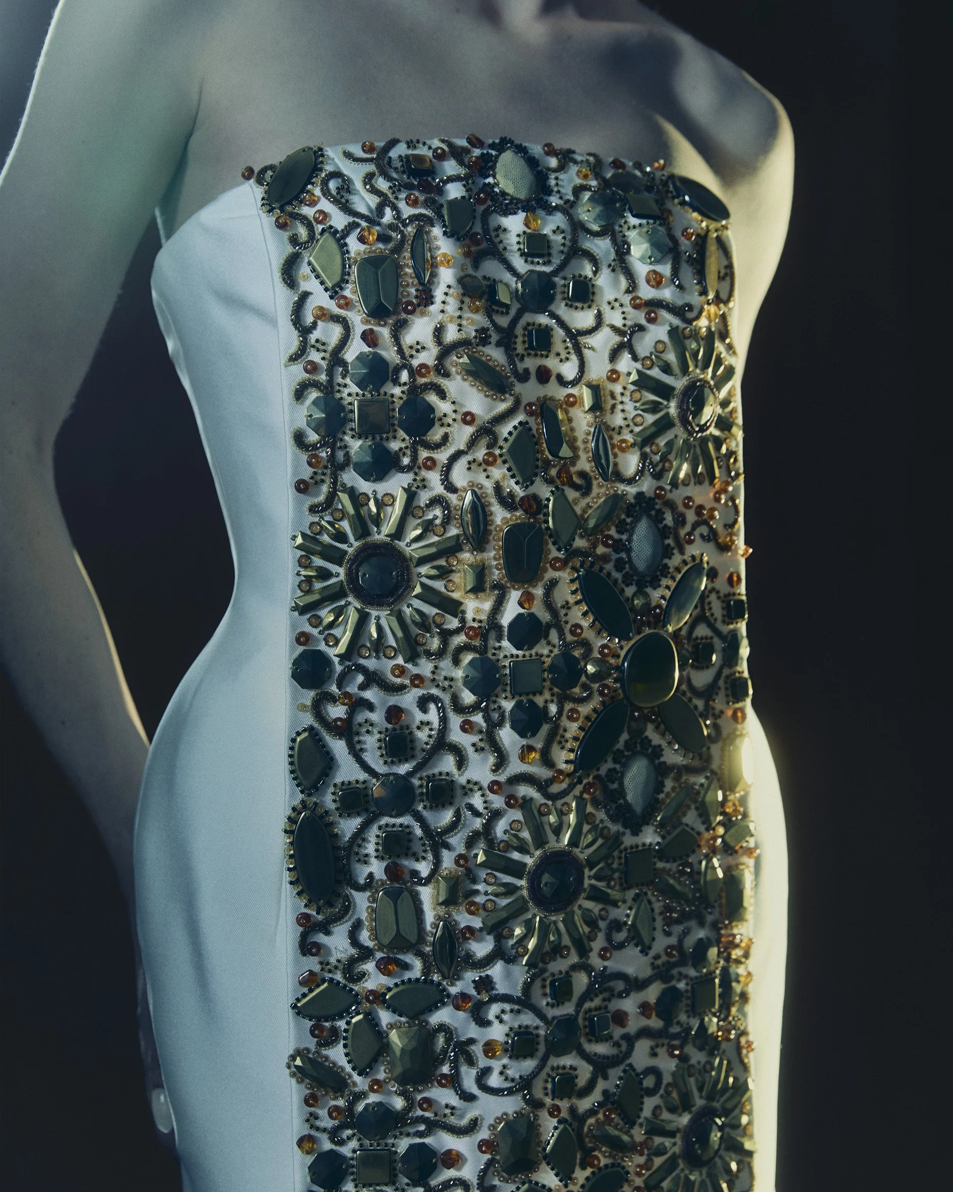 Presented as a cinematic narrative, “Goddess” bridges myth and modern couture, drawing from iconic films including Cleopatra (1963), Julius Caesar (1953), The Ten Commandments (1956), Land of the Pharaohs (1955), and The Egyptian (1954), with a nod to the era’s legendary costume makers such as Charles Le Maire. Draped gowns suggest Grecian divinity; architectural tailoring hints at Roman power; corsetry and sweeping capes deliver pure screen drama.