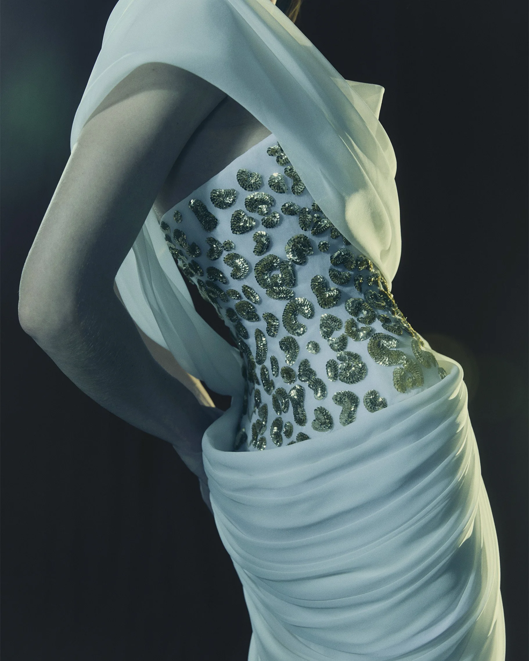Nicholas Oakwell Couture “Goddess” – A love letter to antiquity through Hollywood’s golden lens, the Spring/Summer 2026 collection reimagines Greece, Rome, and Egypt as the cinema of the 1950s and early 60s once did: glamorous, dramatic, and unapologetically epic. Each piece feels like a scene — crafted with the precision and imagination of Oakwell’s atelier.