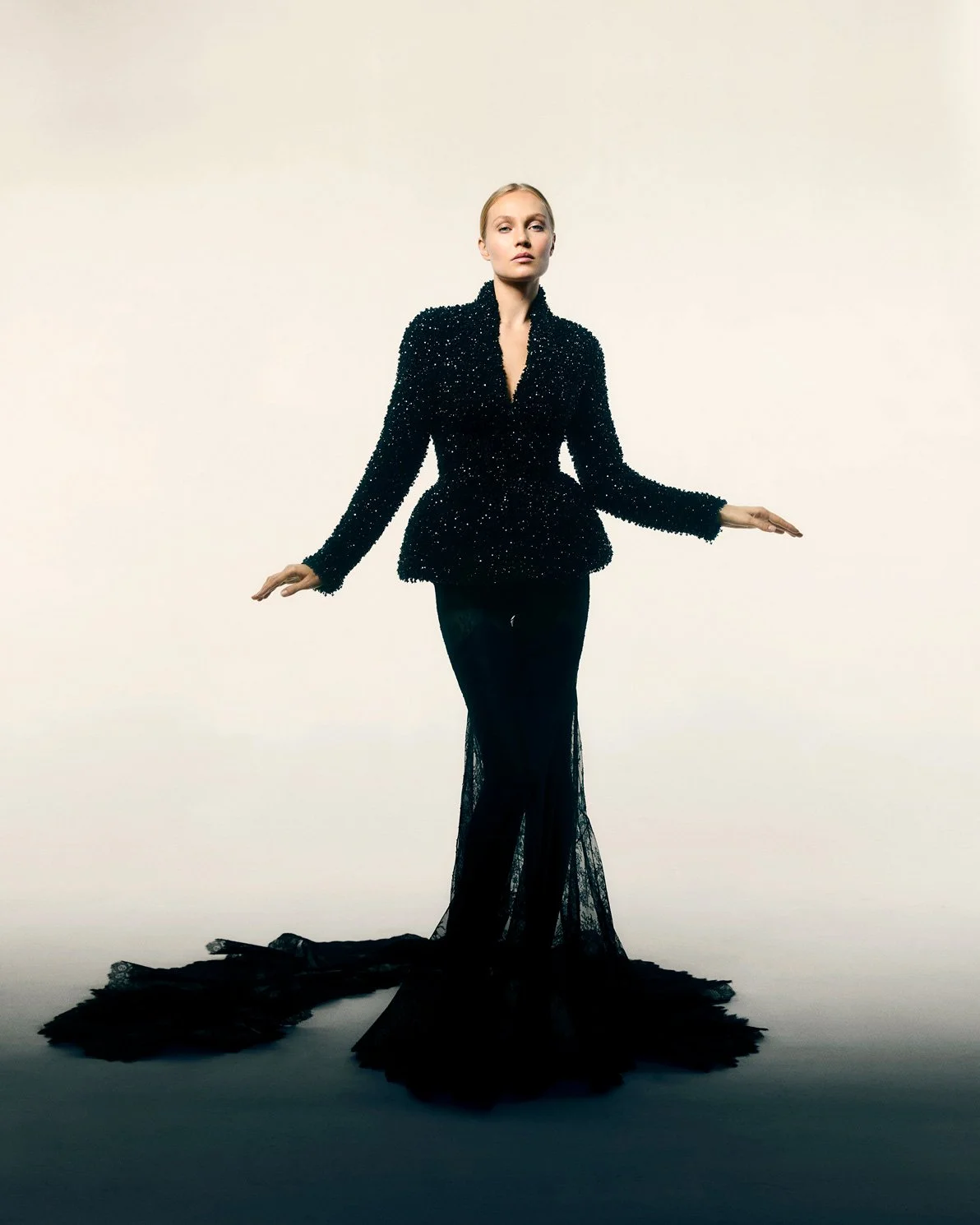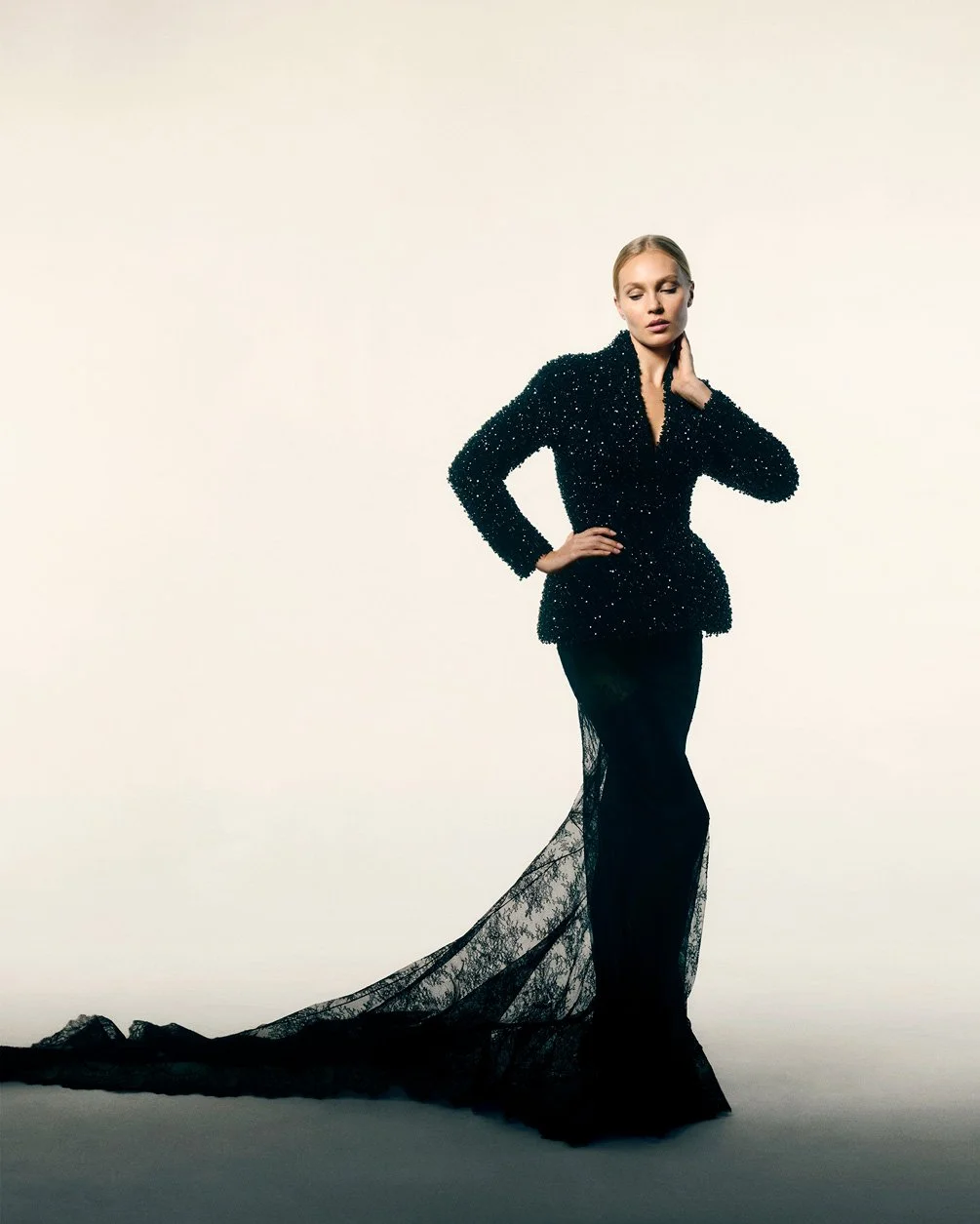 Presented as a cinematic narrative, The Women of Waldorf Astoria bridges past and present, breathing life into the ghosts of high society who once filled the hotel’s grand halls. Oakwell reimagines icons such as Alva Vanderbilt, Jacqueline Kennedy, and Josephine Baker – women whose poise and rebellion defined eras. From Slim Keith’s sculptural sequins to the fluid opulence of Marella Agnelli’s satin gown, each look is steeped in story.